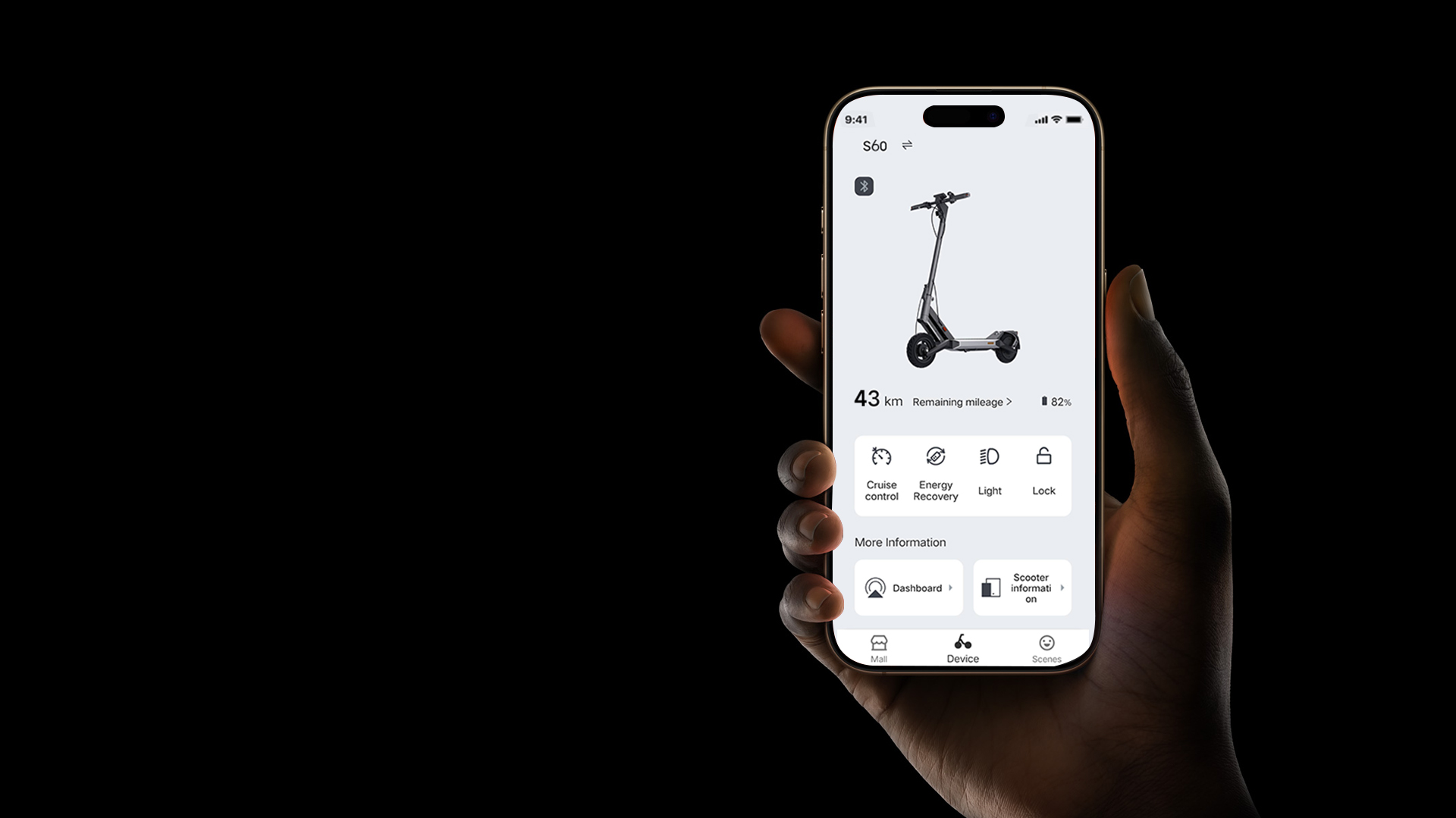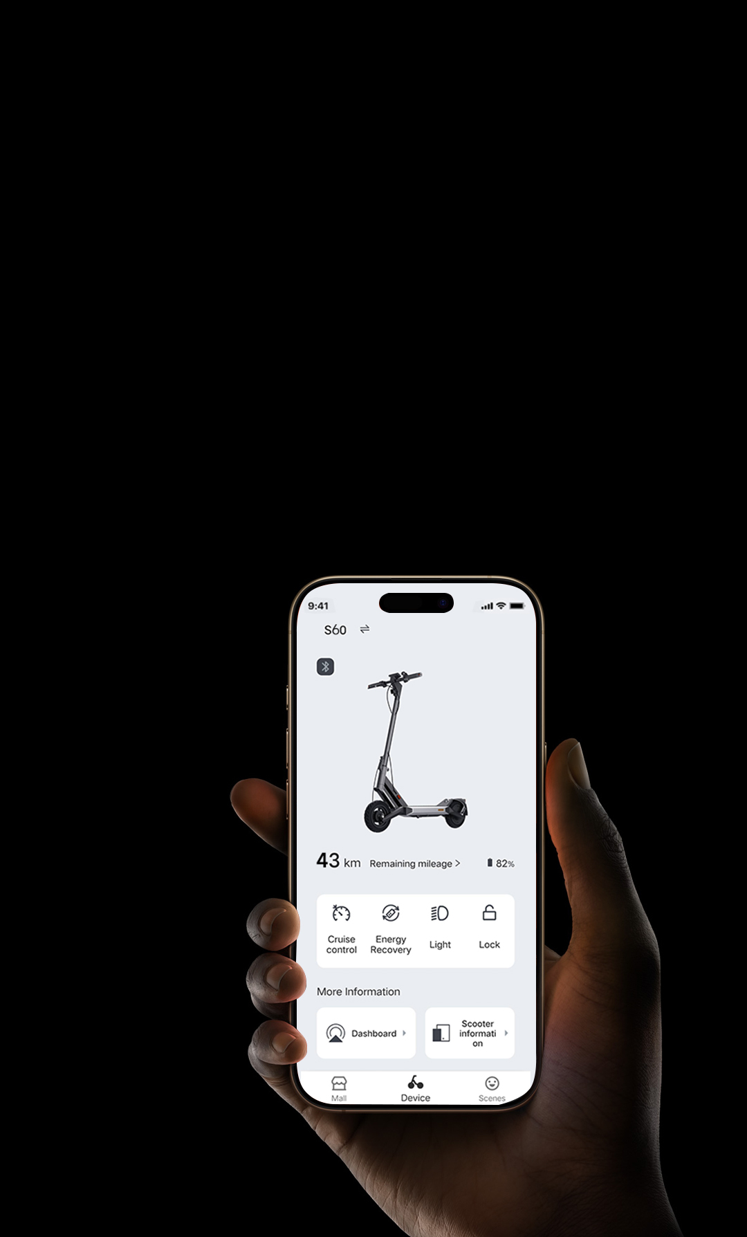 Thanks to Apple Find My network, you can easily keep track of your scooter - even if it's offline. You can quickly locate your scooter when needed via the "Find My" App on your iPhone.
