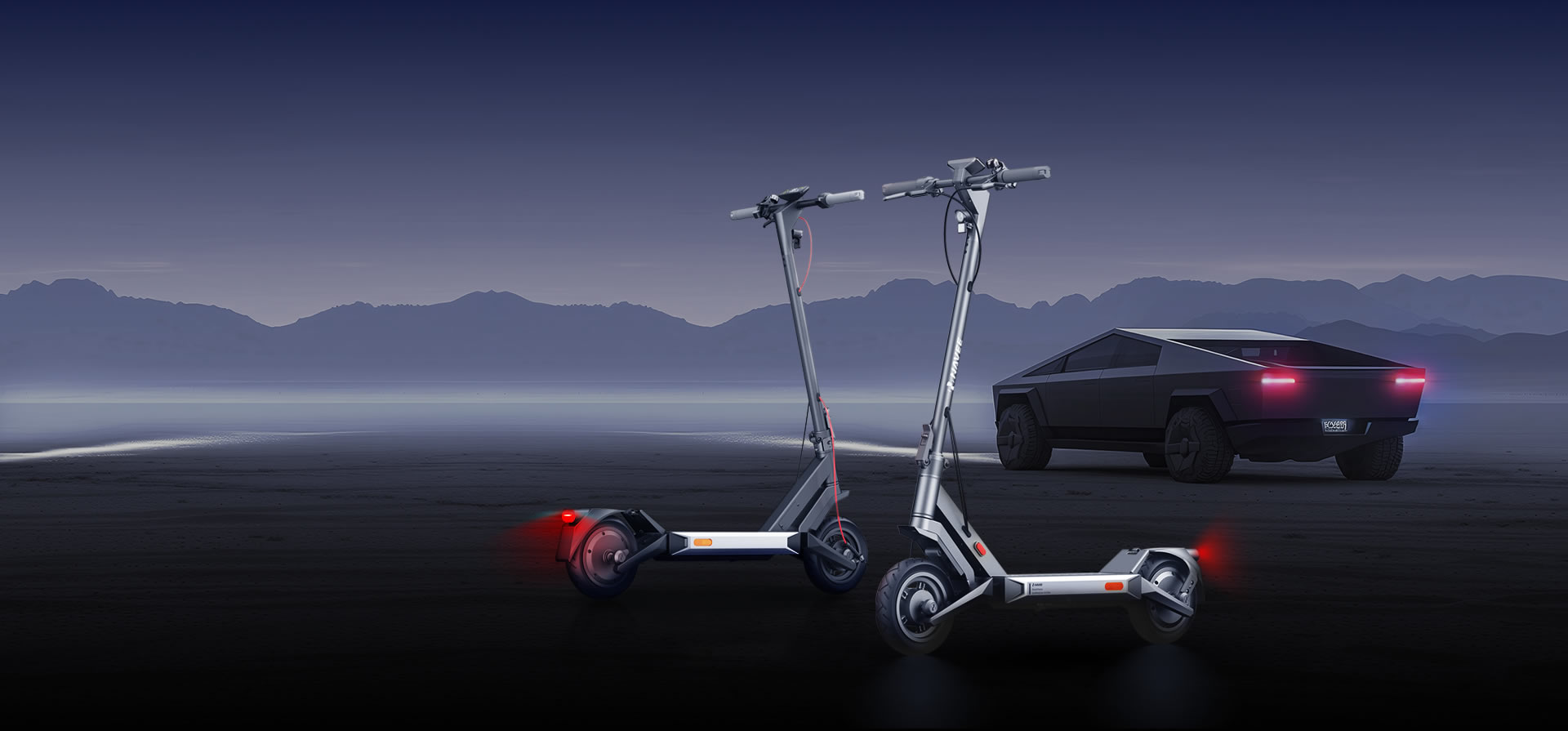 Inspired by the Tesla Cybertruck, the scooter features a striking exterior with a diamond-cut design, emphasizing its robust lines and evoking a powerful sense of speed.