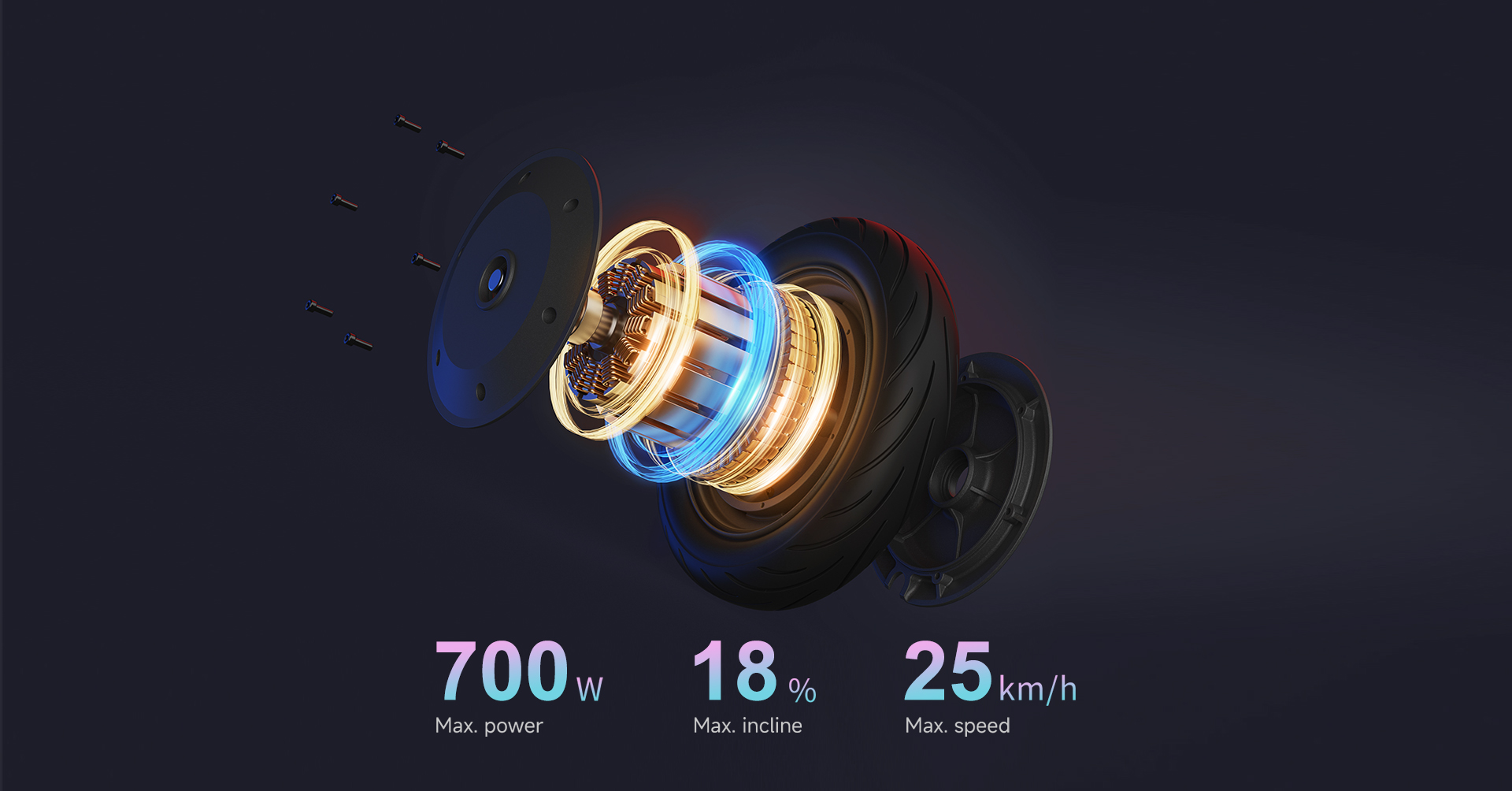 *Max. Range 45km: Tested while riding with a full battery, 75 kg (165 lbs.) load, 25°C (77°F), at 20km/h on average on pavement.